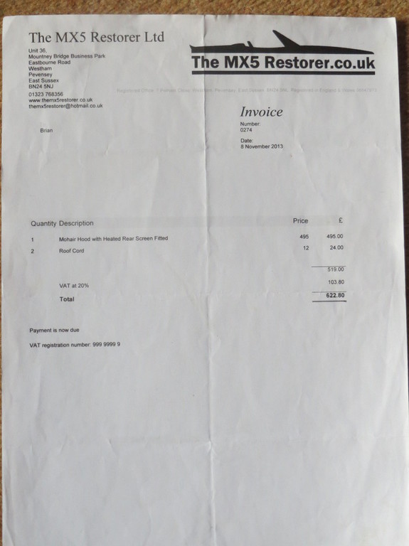 Mohair hood with heated rear screen fitted in 2013 by MX5 Restorer Ltd Pevensey