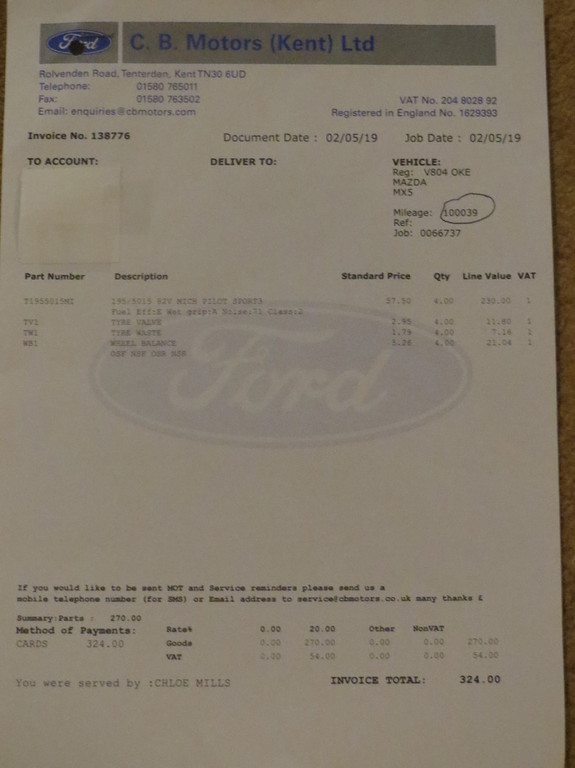 MOT expiry: 22nd May 2020